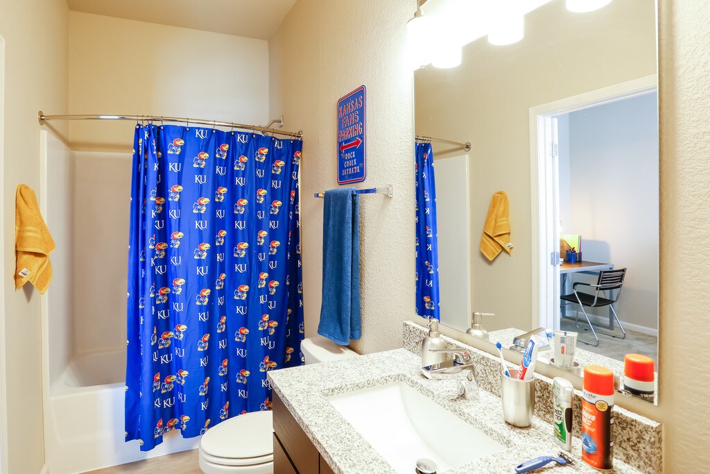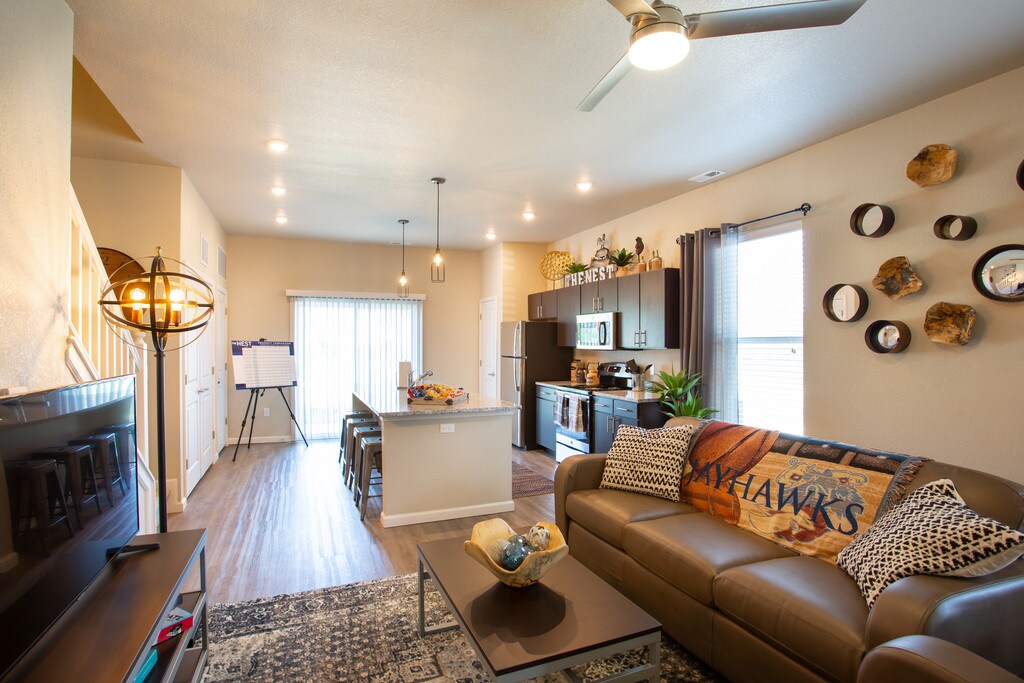 Formerly known as The Nest, The Collective at Lawrence provides premier off-campus student living in the heart of Lawrence, KS. Choose from our 1, 2, 3, and 4 bedroom houses, as well as our 1, 2, and 4 bedroom townhomes. Each of these spacious floor plan options are pet-friendly and fully furnished, as well as a modern kitchen with granite countertops, stainless steel appliances, a full-size washer and dryer, walk-in closets and more. Water, sewer, and trash service are all included in your monthly rental installment. When you're not in class, you will love all of our community amenities we have to offer. Hang out with friends at our resort-style pool and hot tub, workout in our 24-hour fitness center with a yoga and spin room, or play a game at our indoor basketball court. You can also enjoy our resident clubhouse, which includes our computer cafe, private study lounges, and the game room with billiards and ping pong. You can also take a stroll through our spacious community, filled with green space and a trail perfect for your pet.