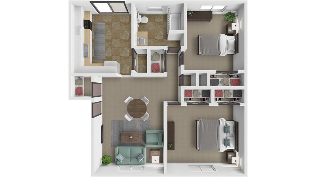 Apartment Model: 2 Bed 1 BathFrom $1,0852 Bedroom, 1 Bath, 1000 sq ftAvailable NowFloorplansPhotos![]()
