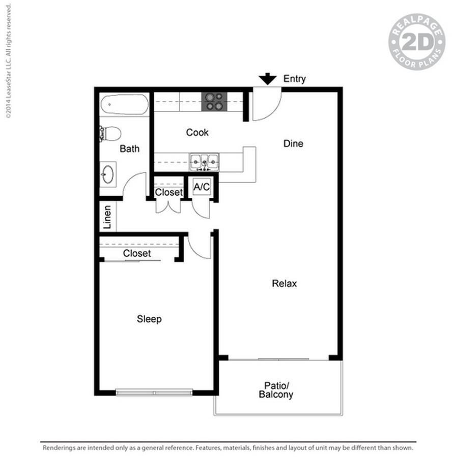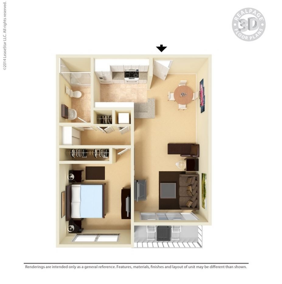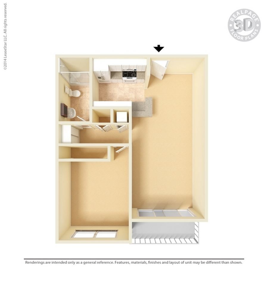 Small 1 Bed 1 Bath - Floorplan 1 Floor plans are artist's rendering. All dimensions are approximate. Actual product and specifications may vary in dimension or detail. Not all features are available in every rental home. Prices and availability are subject to change. Base rent is based on monthly frequency. Additional fees may apply, such as but not limited to package delivery, trash, water, amenities, etc. Deposits vary. Please see a representative for details.