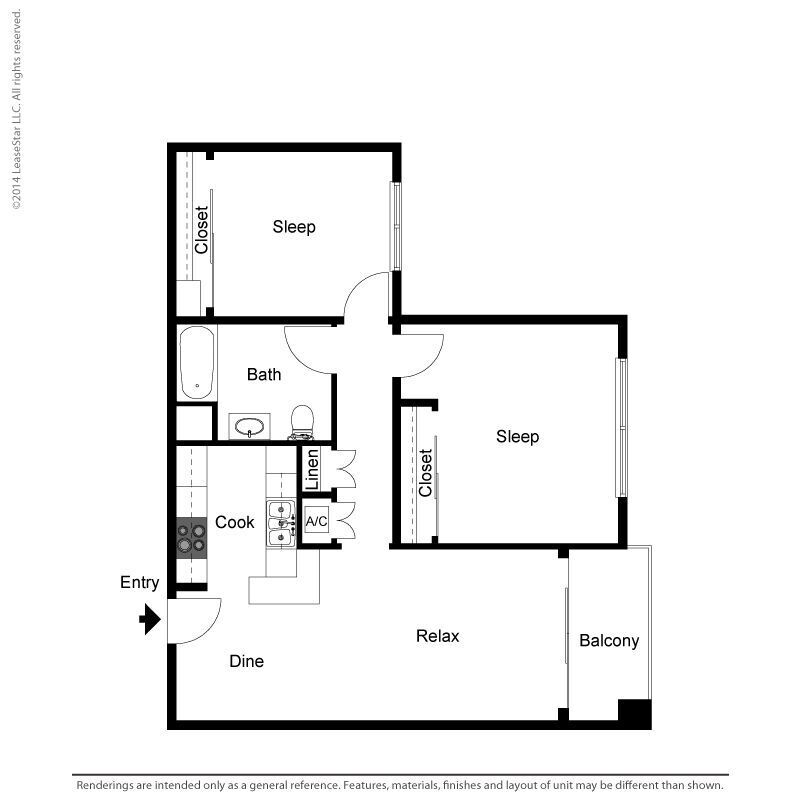 Apartment Model: Small 1 Bed 1 BathFrom $2,3001 Bedroom, 1 Bath, 650 sq ftAvailable NowFloor plans are artist's rendering. All dimensions are approximate. Actual product and specifications may vary in dimension or detail. Not all features are available in every rental home. Prices and availability are subject to change. Base rent is based on monthly frequency. Additional fees may apply, such as but not limited to package delivery, trash, water, amenities, etc. Deposits vary. Please see a representative for details.