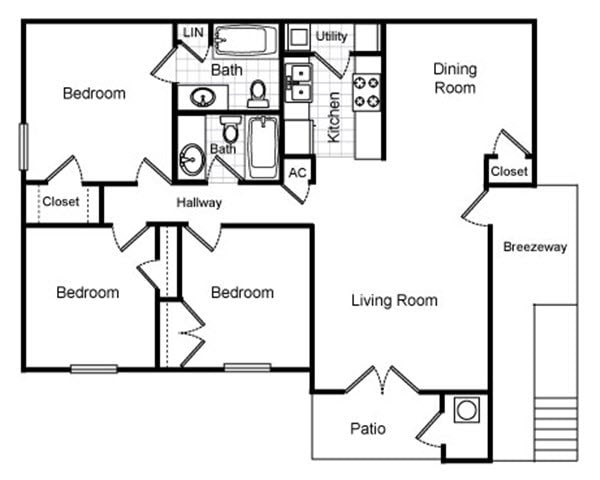 Apartment Model: Three Bedroom3 Bedroom, 2 Bath, 1255 sq ftAvailable Now![]()