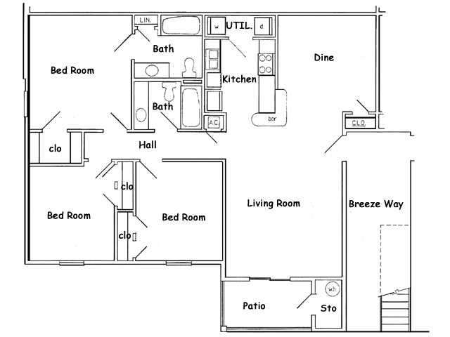 Three Bedroom - Floorplan 3 Apartment Unit: 05GApartment Model: Three Bedroom3 Bedroom, 2 Bath, 1255 sq ftAvailable NowApartment Unit: 05BApartment Model: Three Bedroom3 Bedroom, 2 Bath, 1255 sq ftAvailable December 1, 2025