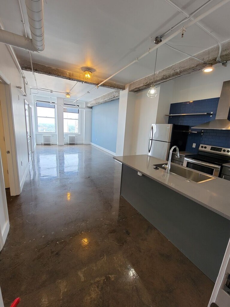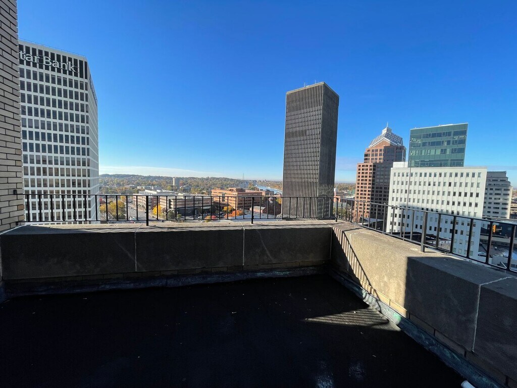 **13 month leasing special, 2nd month free!!** Experience modern living with a touch of historic charm in this spacious Studio, 1-bath apartment at The Columbus Building. Boasting thoughtfully designed space, this home features sleek quartz countertops and stainless-steel appliances. Your own Private Balcony overseeing the City of Rochester!! In-unit laundry and tons of closet space! The open layout allows for versatile living and dining arrangements, while large windows fill the space with natural light. Residents enjoy all the conveniences of the building, including controlled-access entry, on-site maintenance, a fitness center, and laundry facilities, plus the vibrant East End neighborhood just steps from your door.