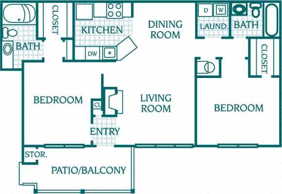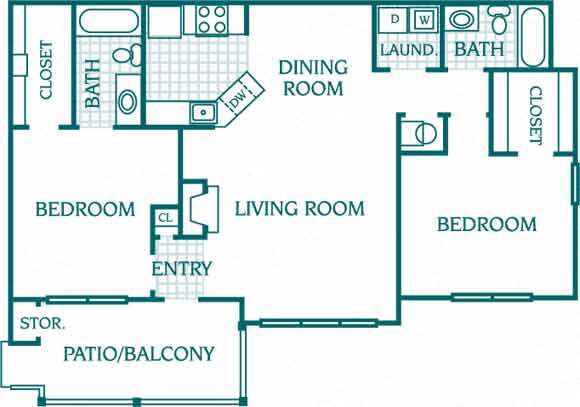 Apartment Model: 2 Bedroom 2 Bath - DFrom $1,4102 Bedroom, 2 Bath, 1216 sq ftAvailable Now![]()