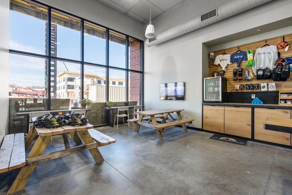 - On-Site Climbing Gym + Fitness Center