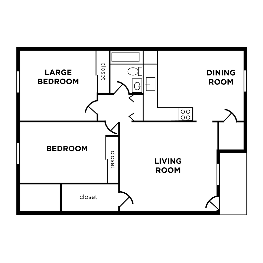 2 Beds, 1 Bath, 900 sq ftAvailable NowModel Gallery