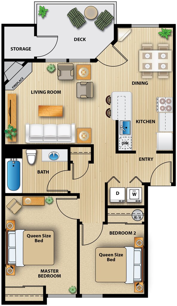 2 Beds, 1 Bath, 866 sq ftAvailable NowModel Gallery