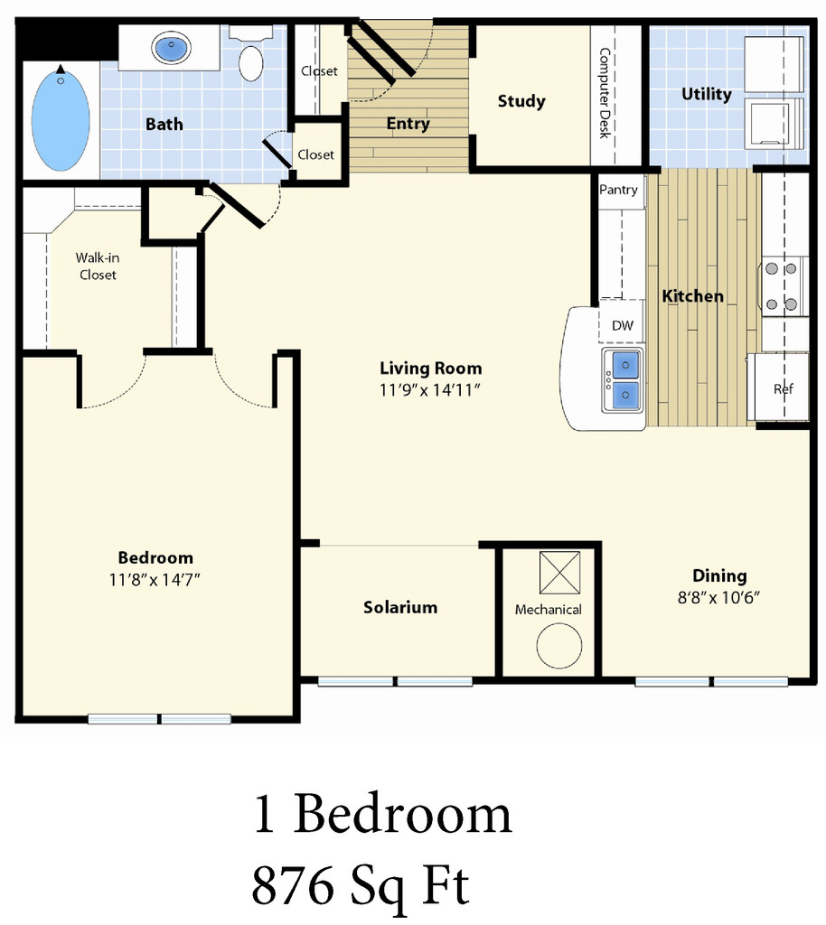1 Bed, 1 Bath, 844-876 sq ftTotal Monthly PriceAvailable NowModel Gallery