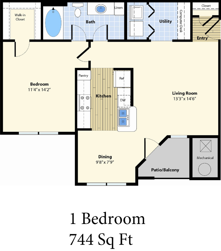 1 Bed, 1 Bath, 744 sq ftTotal Monthly PriceAvailable Dec 11Model Gallery