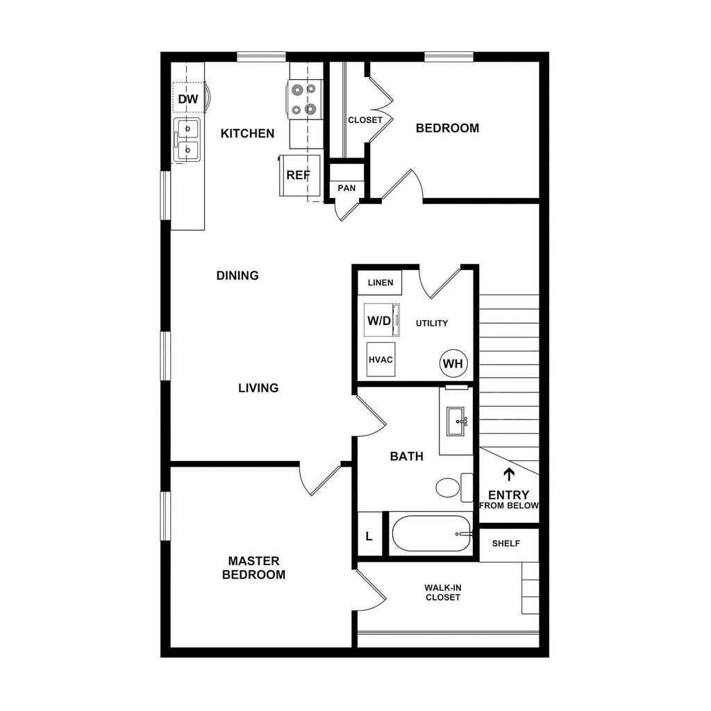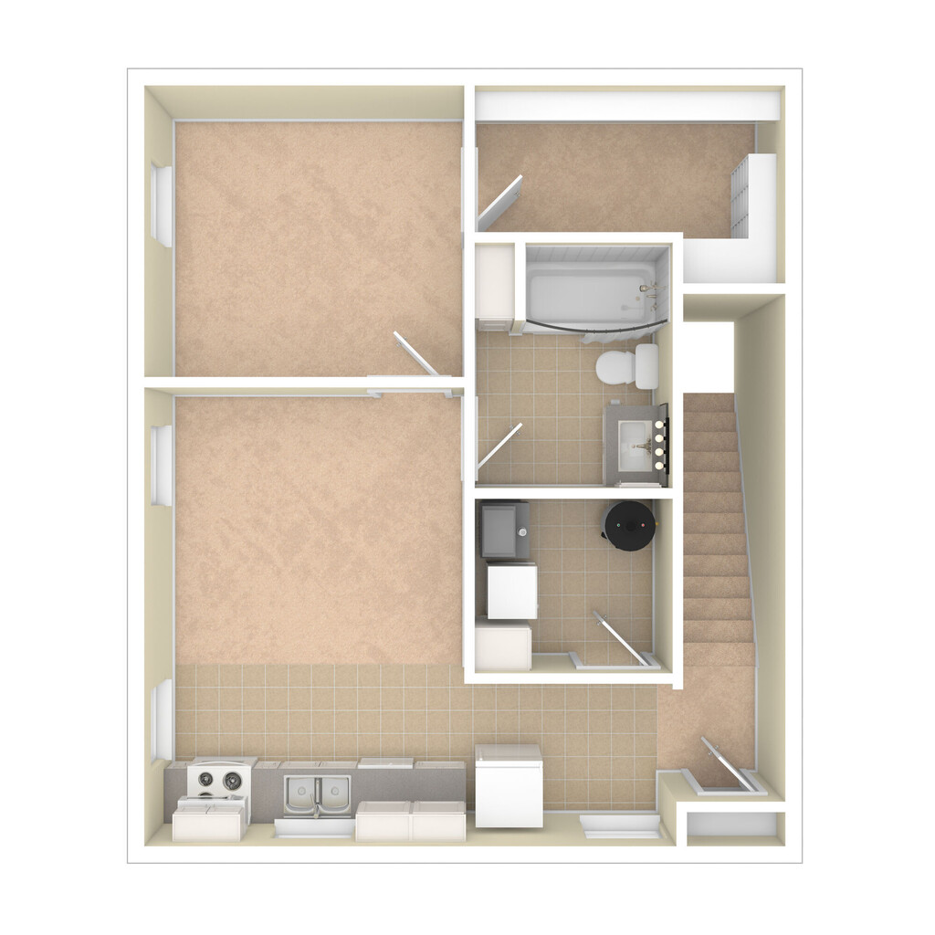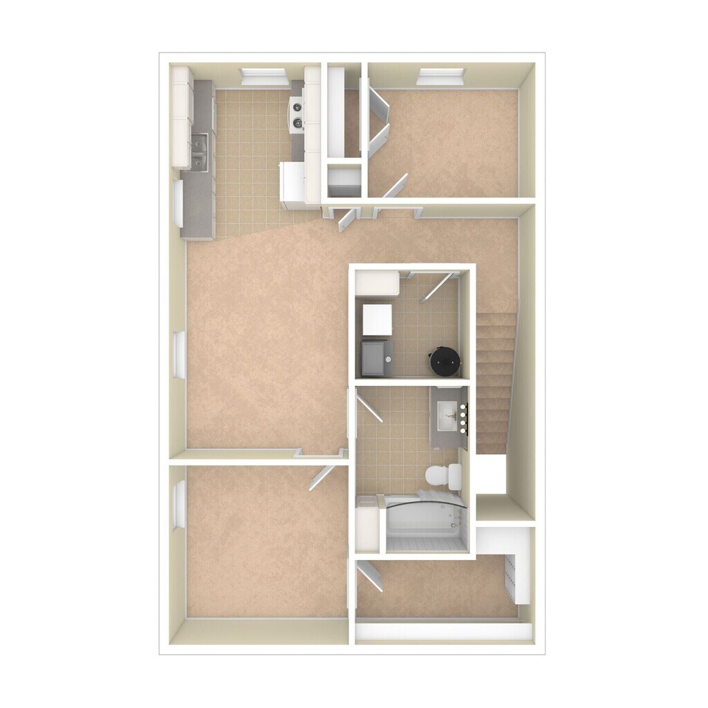 2 Bedroom + 1.5 Bath - Floorplan 3 2 Bedroom + 1 Bath (2nd floor)