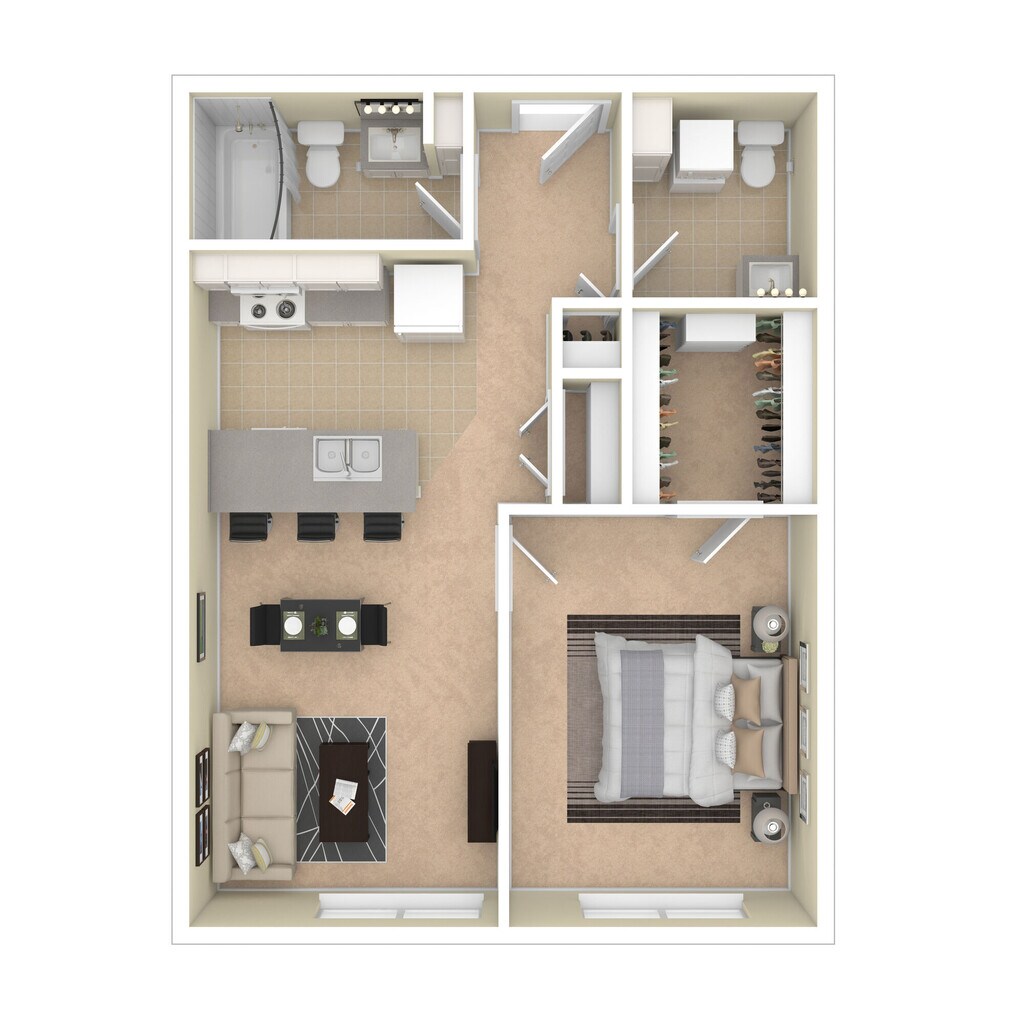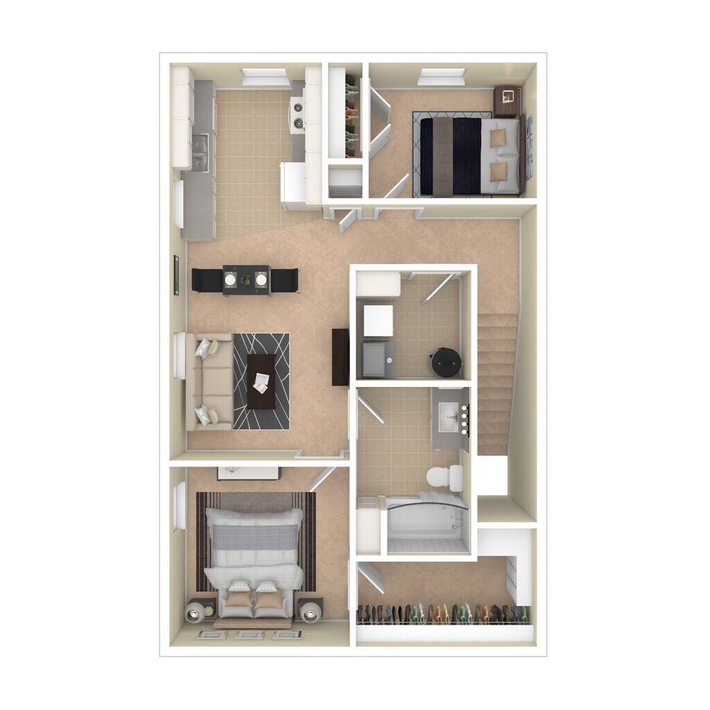 2 Beds, 1.5 Baths, 802 sq ftModel Gallery