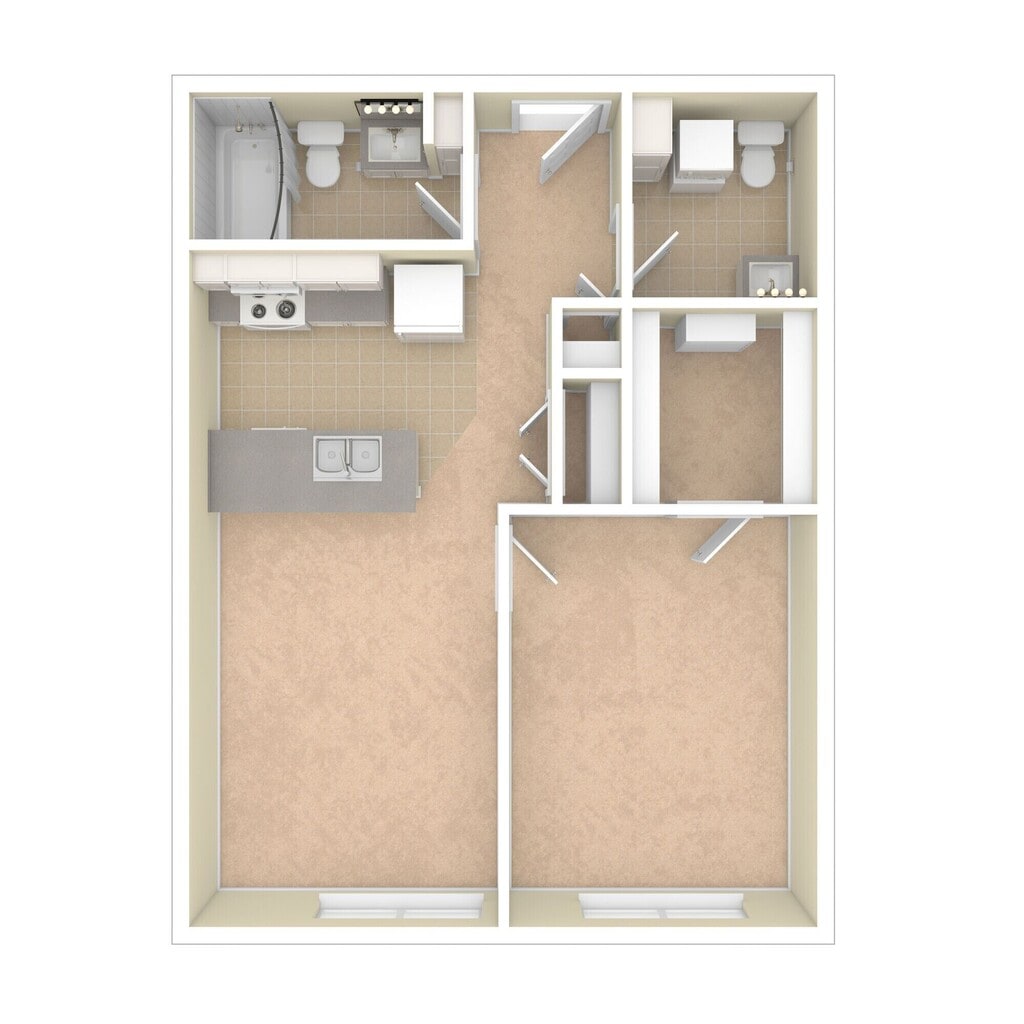 Apartment Model: 2 Bedroom + 1.5 Bath2 Bedroom, 1.5 Bath, 802 sq ftUnavailable![]()