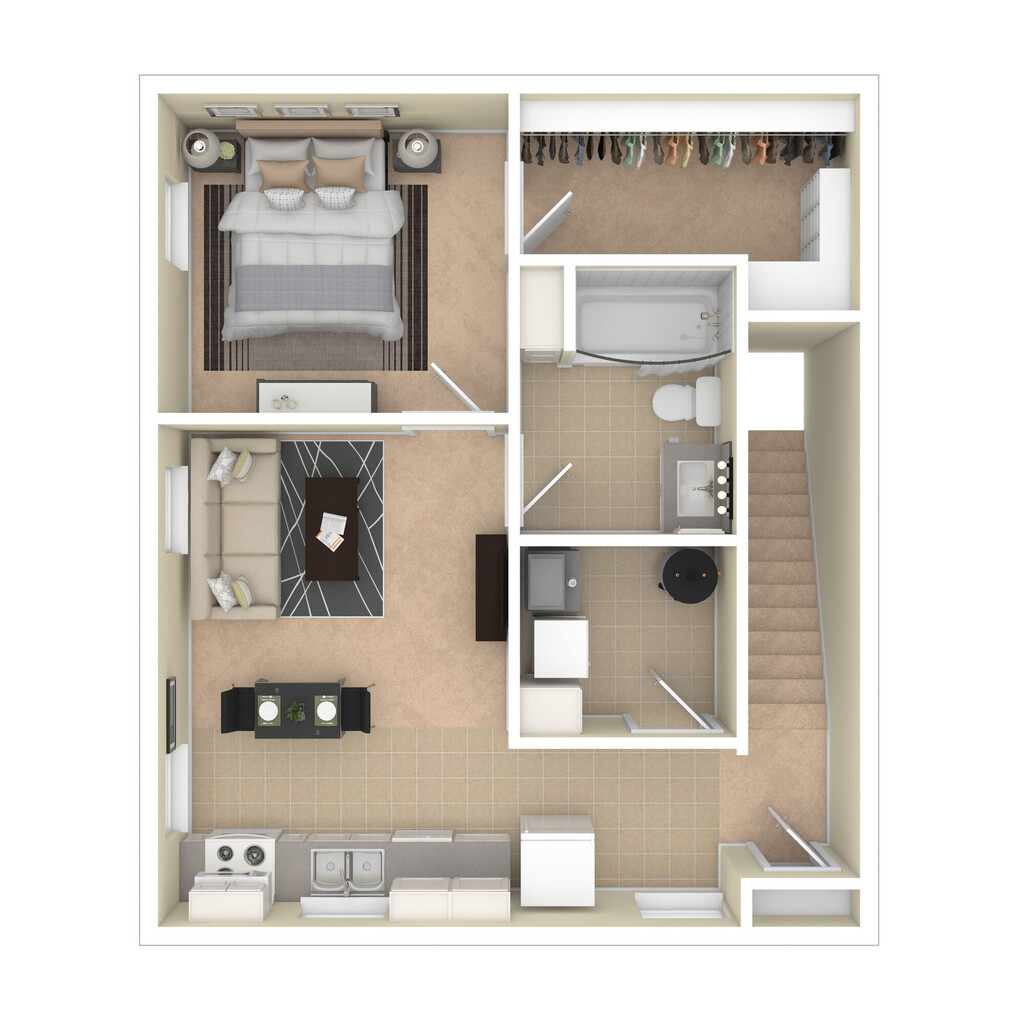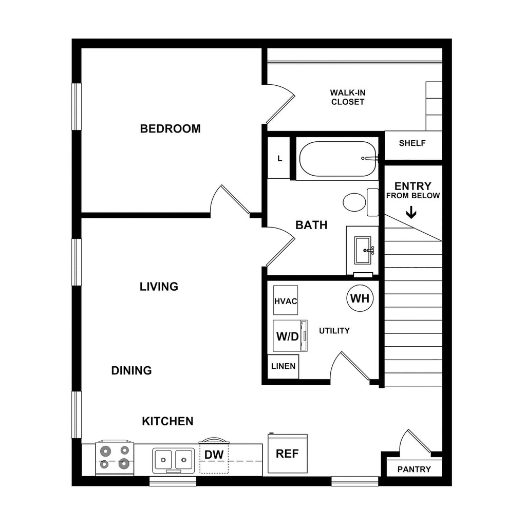 1 Bedroom + 1 Bath - Floorplan 3 1 Bedroom + 1 Bath (2nd floor)