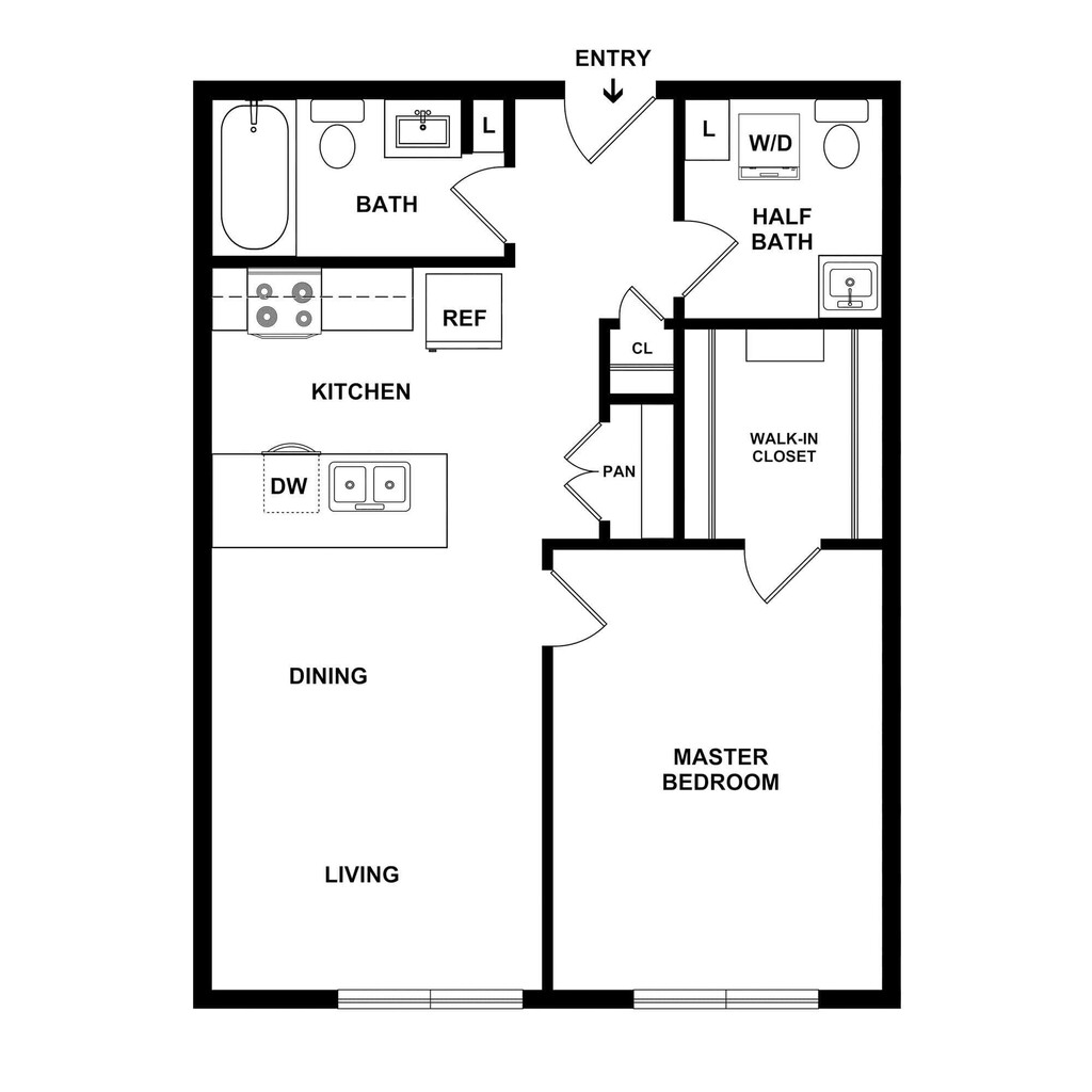 1 Bedroom + 1.5 Bath - Floorplan 3 1 Bedroom + 1 Bath (ADA)