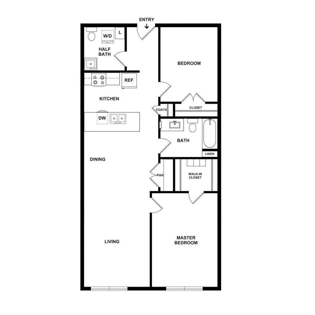 2 Bedroom + 1.5 Bath - Floorplan 2 ![]()