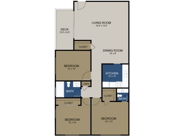 Two Bedroom K - Floorplan 1 3 Bedrooms