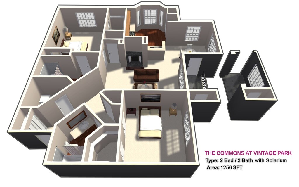 2 Beds, 2 Baths, 1256 sq ftLargest 2 BedroomThis is the largest 2 Bedroom at this PropertyModel Gallery