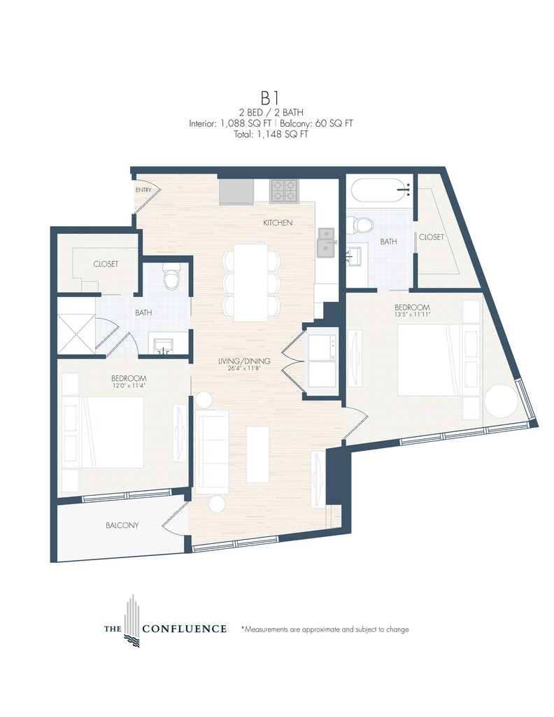 Studio to 3 Bedroom Apartments at The Confluence currently range from $1,749 to $14,931