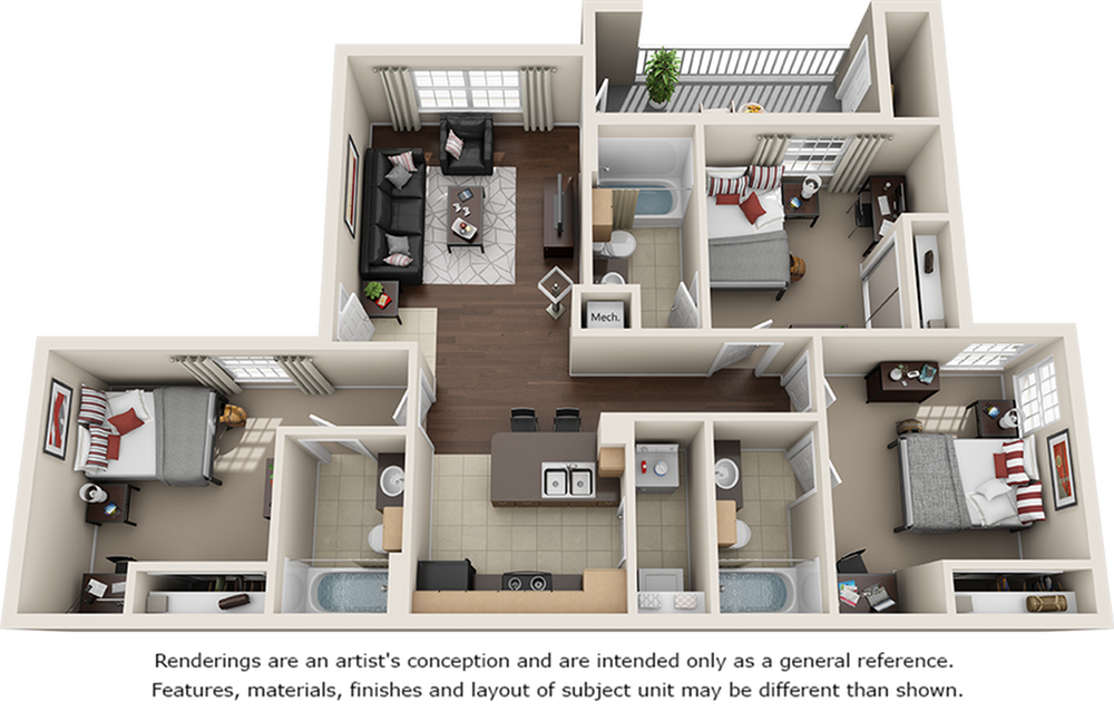 1 Bedroom to 4 Bedroom Apartments at The Connection currently range from $609 to $1,549