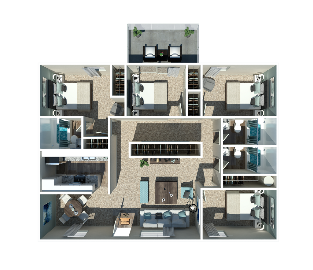 4 Bedroom 3 Bath - Floorplan 1 Apartment Unit: L21Apartment Model: 4 Bedroom 3 BathFrom $1,6994 Bedroom, 3 Bath, 1548 sq ftAvailable November 11, 2025