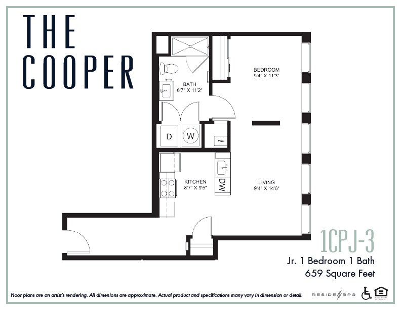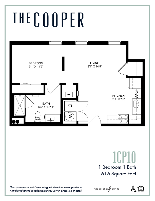 Apartment Model: 1CP9From $1,5561 Bedroom, 1 Bath, 629 sq ftAvailable Now![]()