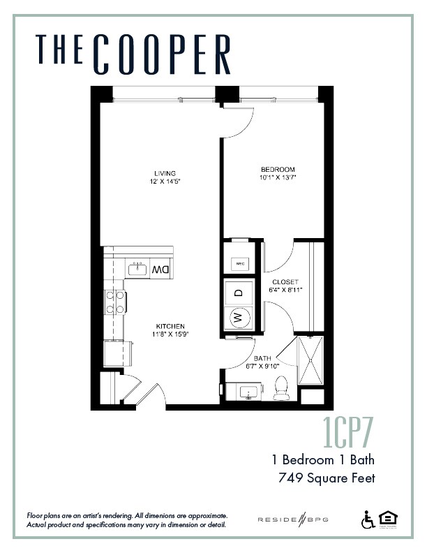 1CP7 - Floorplan 1 Apartment Unit: 201Apartment Model: 1CP7From $1,6431 Bedroom, 1 Bath, 749 sq ftAvailable Now1CP5