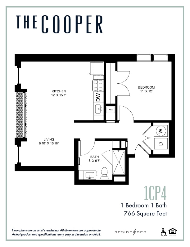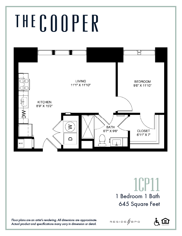 1CP9 - Floorplan 1 Apartment Unit: 423Apartment Model: 1CP9From $1,5561 Bedroom, 1 Bath, 629 sq ftAvailable Now1CP7