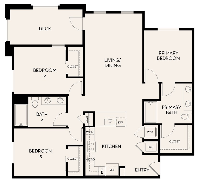 Apartment Model: B3Call For Rates2 Bedroom, 2 Bath, 1043 sq ftUnavailableFloor plans are artist's rendering. All dimensions are approximate. Actual product and specifications may vary in dimension or detail. Not all features are available in every rental home. Prices and availability are subject to change. Base rent is based on monthly frequency. Additional fees may apply, such as but not limited to package delivery, trash, water, amenities, etc. Deposits vary. Please see a representative for details.