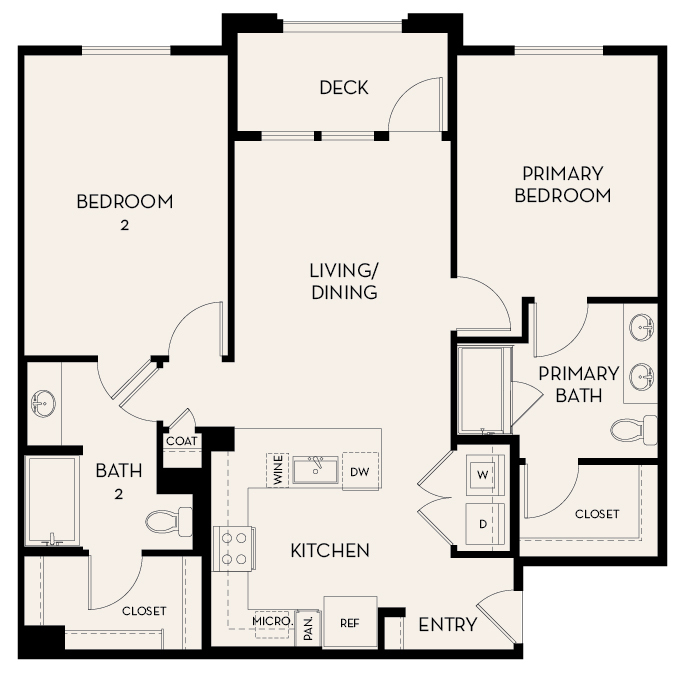 Apartment Model: B2From $3,0322 Bedroom, 2 Bath, 1280 sq ftAvailable NowFloor plans are artist's rendering. All dimensions are approximate. Actual product and specifications may vary in dimension or detail. Not all features are available in every rental home. Prices and availability are subject to change. Base rent is based on monthly frequency. Additional fees may apply, such as but not limited to package delivery, trash, water, amenities, etc. Deposits vary. Please see a representative for details.