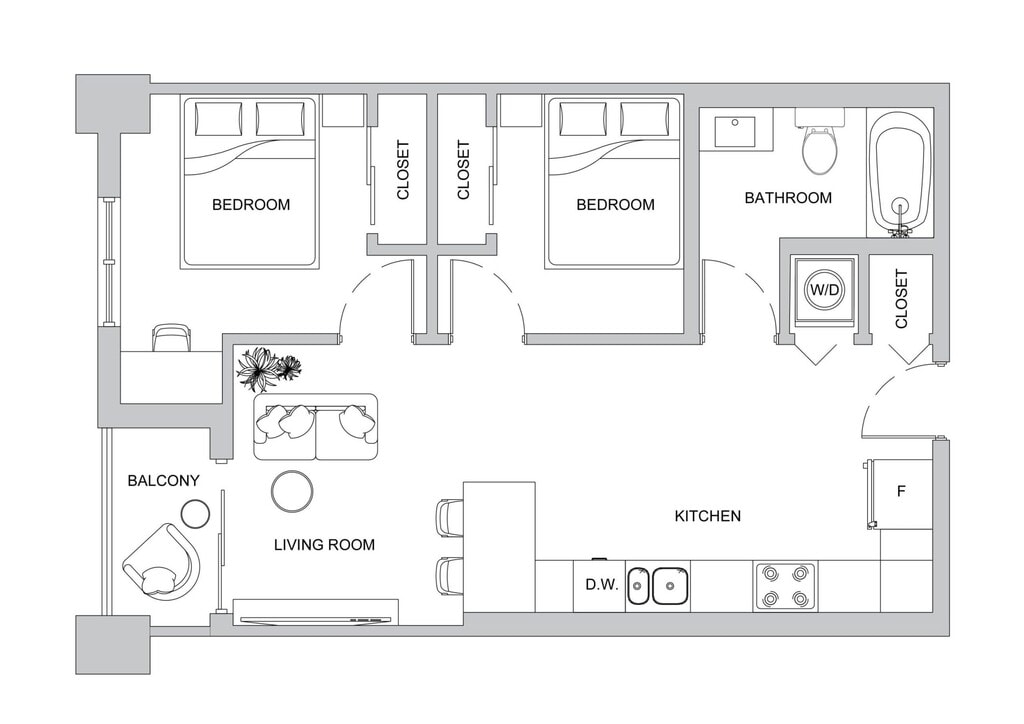 2 Beds, 1 Bath, 653 sq ftAvailable NowModel Gallery