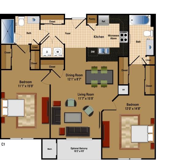 1 Bed + Den, 1 Bath 846 SF AD1 - Floorplan 2 Apartment Unit: 9036-127Apartment Model: 1 Bed + Den, 1 Bath 846 SF AD1$2,5501 Bedroom, 1 Bath, 846 sq ftAvailable Now1 Bed + Loft, 1 Bath 858 SF AL3