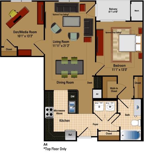 1 Bed + Loft, 1 Bath 854 SF AL1