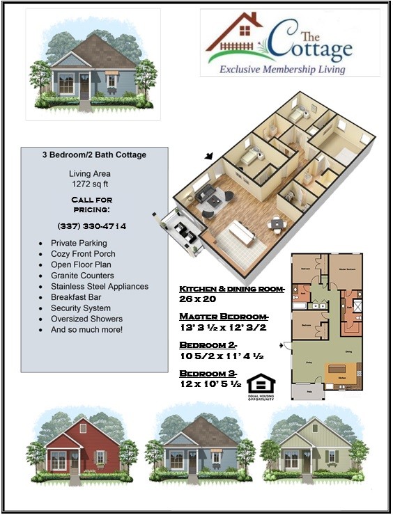Price Availability Date Unit Sq Ft $1,795 Call for Availability 3 Bed 2 Bath Cottage 1272 sq ft Model Amenities and Features
