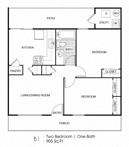 Apartment Model: B1Call For Rates2 Bedroom, 1 Bath, 905 sq ftUnavailableB1 - Floorplan 1 Floorplan B2