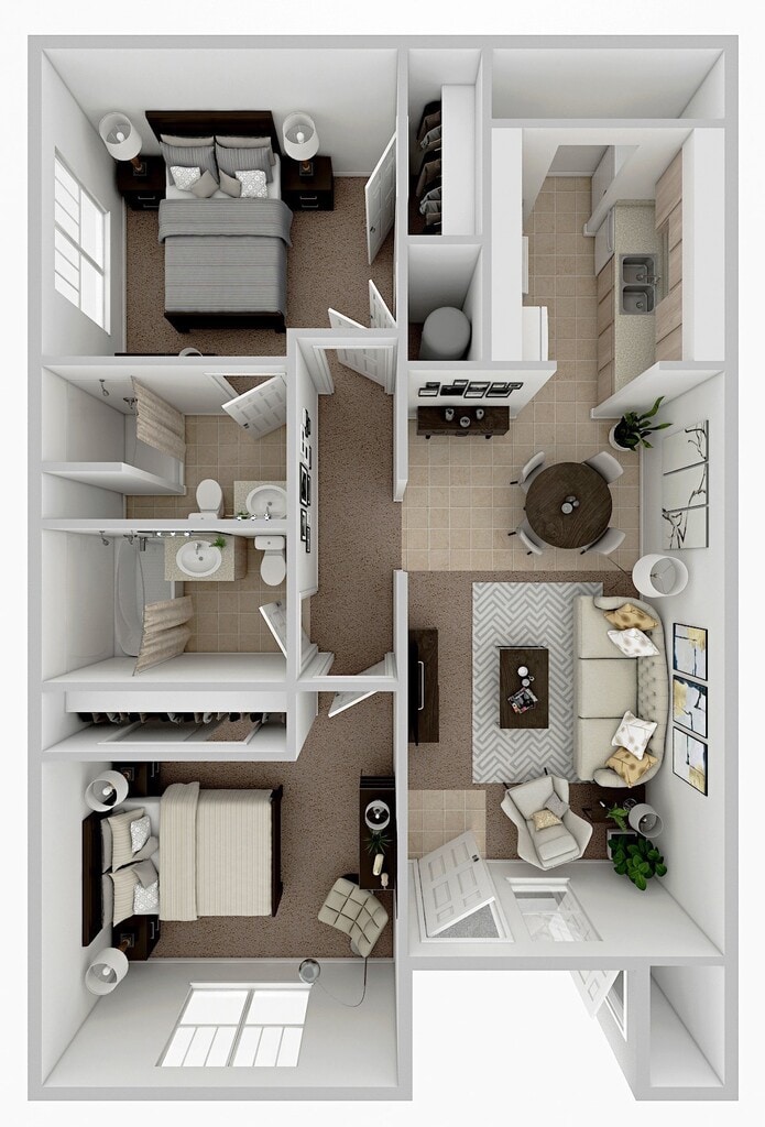2 Beds, 2 Baths, 900 sq ftModel Gallery