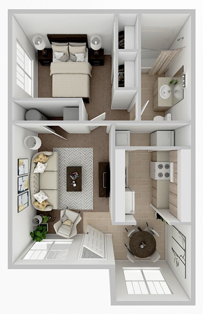 1 Bed, 1 Bath, 620 sq ftAvailable NowModel Gallery
