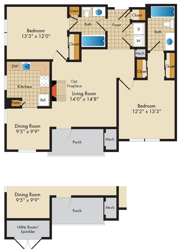 1 Bed, 1 Bath, 833 sq ftModel Gallery
