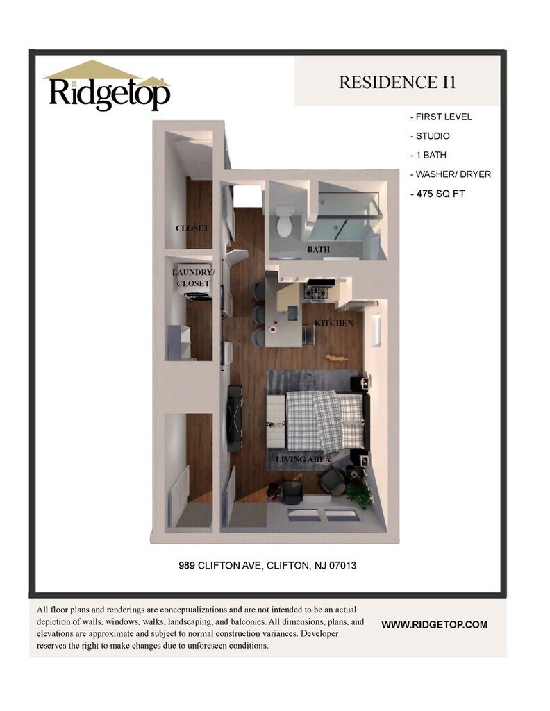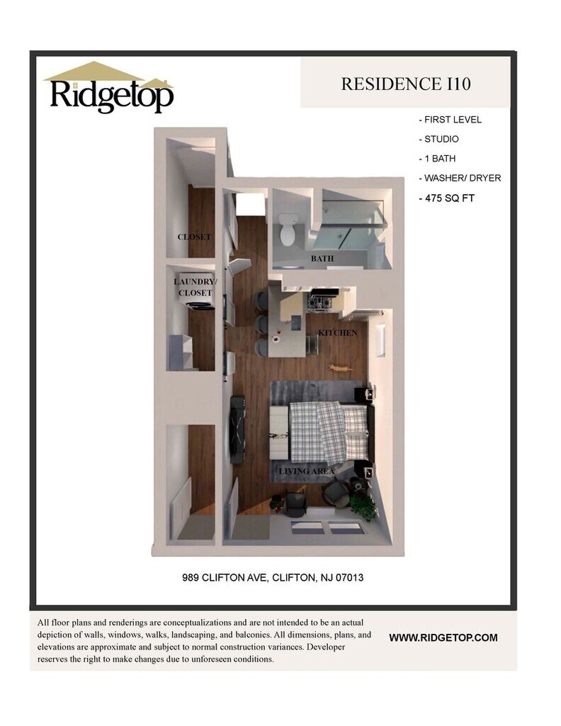 Welcome home to The Courtyard @ Clifton. This beautiful garden community is nestled in the heart of Clifton, New Jersey. Located just minutes from major highways, this community provides an extraordinary level of privacy, comfort, and serenity expected from suburban living. Our pet-friendly studio, one, and one bedroom with den apartment homes boast spacious layouts, newly refinished hard wood floors, and ample closet space. As a resident of The Courtyard @ Clifton, you will experience exceptional service from our professional team and an ideal location within walking distance to various shopping, dining, and entertainment destinations. Criss-crossed by several major highways including Routes 3, 21, 19, 46, and The Garden State Parkway, public transportation is easily accessed on site at The Courtyard @ Clifton making it a solid residence option for commuters in the Tri-State area. Community Features: Online Rent Payment |Online Maintenance Requests | 24-Hour Emergency Maintenance Service | Convenient to Public Transportation, Highways, Dining, Shopping & New York City | Cats and small dogs are permitted at this Ridgetop property. Professionally Managed by Ridgetop Corporation. Availability, pricing and finishes may vary and are subject to change.