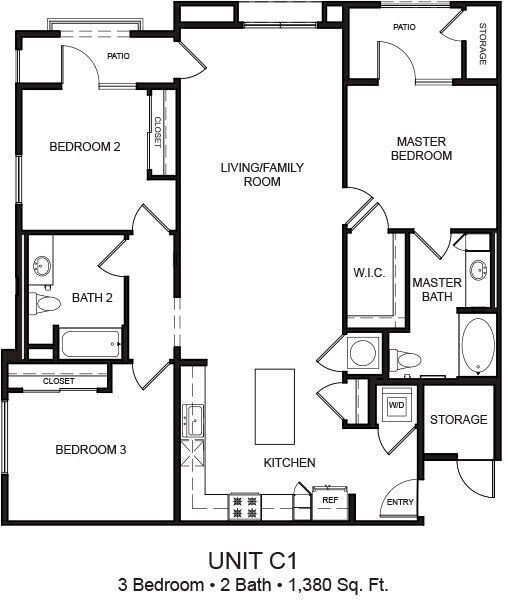 2 Beds, 2 Baths, 1202 sq ftLargest 2 BedroomThis is the largest 2 Bedroom at this PropertyModel Gallery