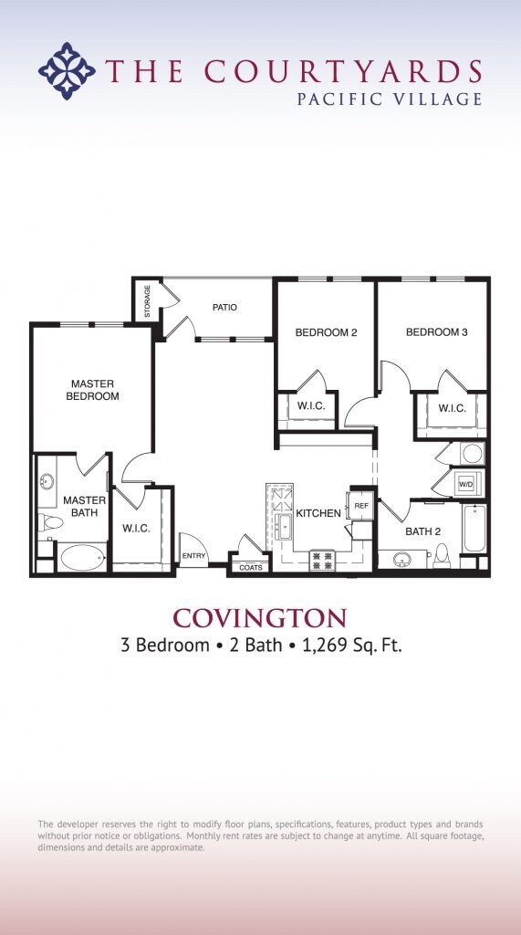 1 Bedroom to 3 Bedroom Apartments at The Courtyards Pacific Village currently range from $2,533 to $4,248