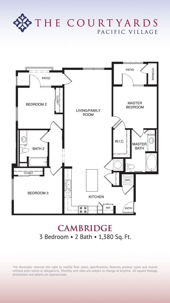 The Courtyards Pacific Village offers 1 to 3 Bedroom apartments starting from $2,533 and having 665–1,380 sq ft. Here is the current pricing and availability: