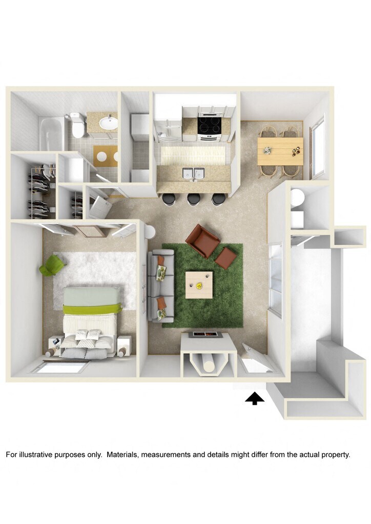 1 Bed, 1 Bath, 740 sq ftAvailable NowLargest 1 BedroomThis is the largest 1 Bedroom at this PropertyModel Gallery