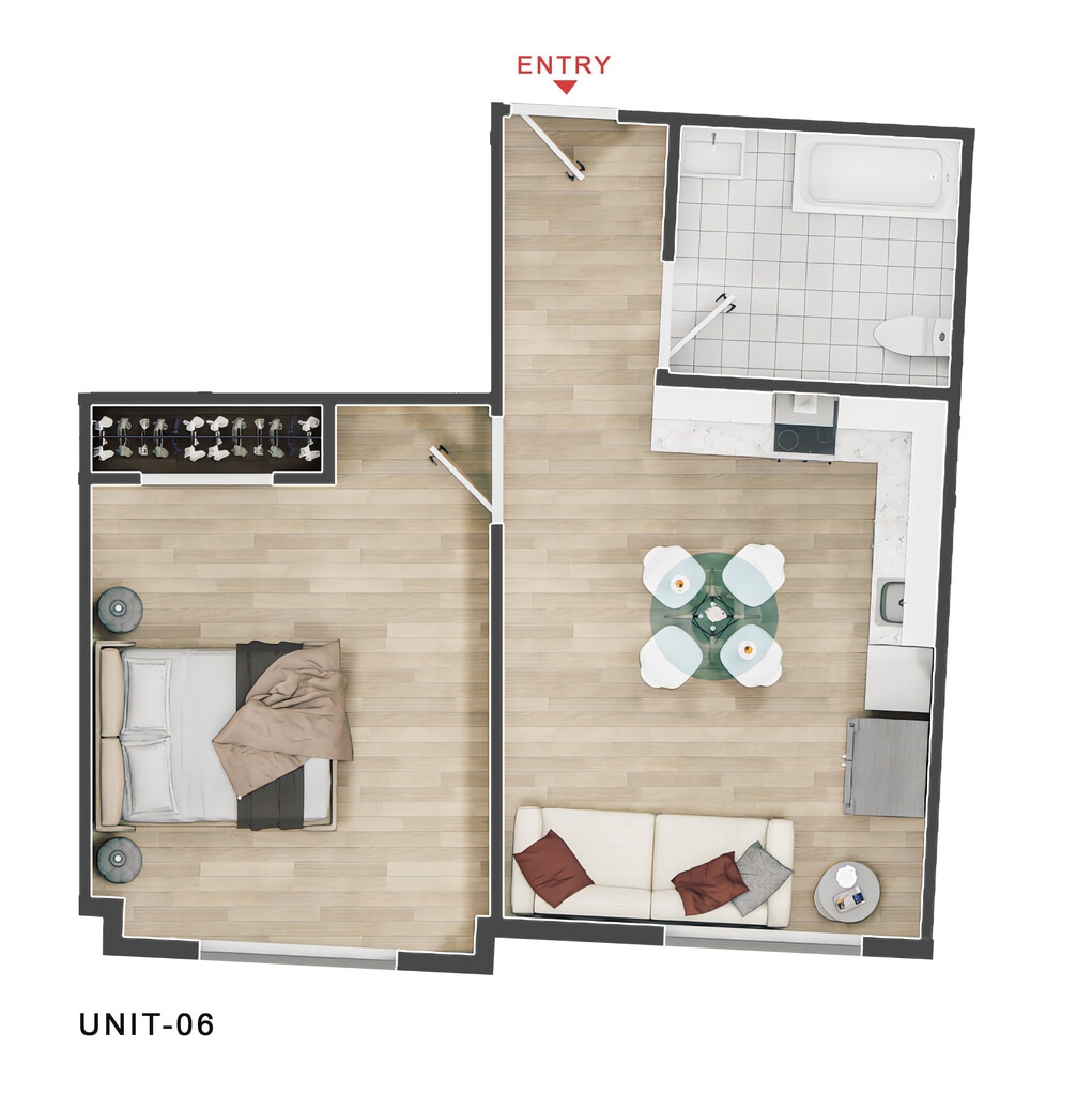 - 1 Bedroom- Floorplan 06- From $1,8501 Bed, 1 Bath, from 511 sq ftAvailable Now- Model Gallery- Floorplans- Photos- Availability Details- Price - Availability Date - Unit - Sq Ft - From $1,850 - Available Now - 06 - from 511 sq ft - Model Amenities and Features- Features- Air Conditioning
