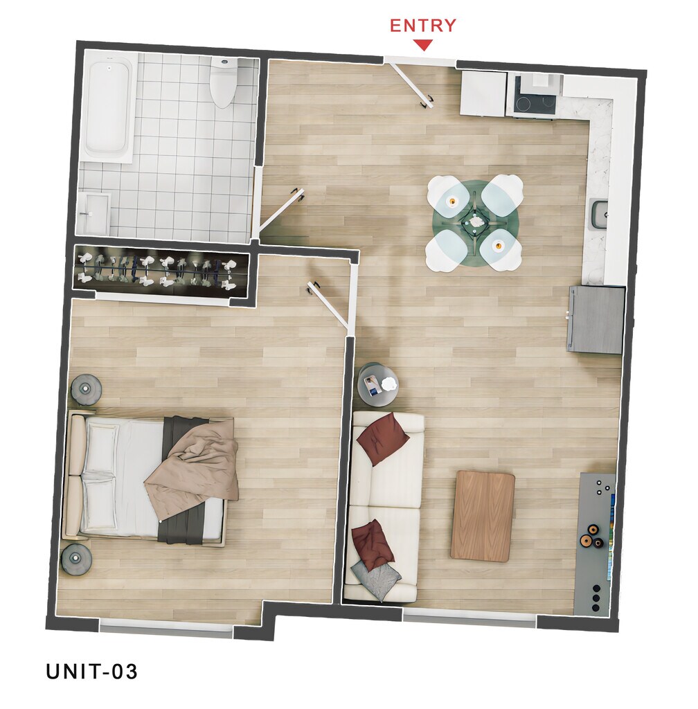 Apartment Model: 03From $1,9501 Bedroom, 1 Bath, from 590 sq ftAvailable NowFloorplansPhotos![]() - 03 - Image 1 ![]() - 03 - Image 2 ![]() - 03 - Image 3 ![]() - 03 - Image 4 ![]() - 03 - Image 5 ![]() - 03 - Floorplan 6