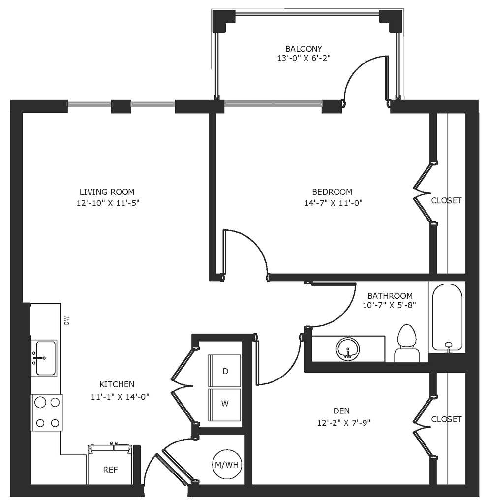 Studio, 1 Bath, 614 sq ftModel Gallery