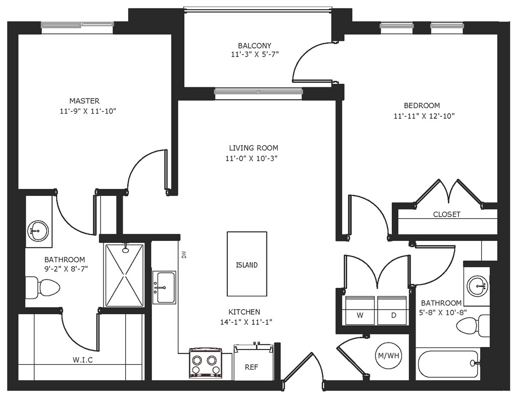 1 Bed, 1 Bath, 730 sq ftAvailable NowModel Gallery