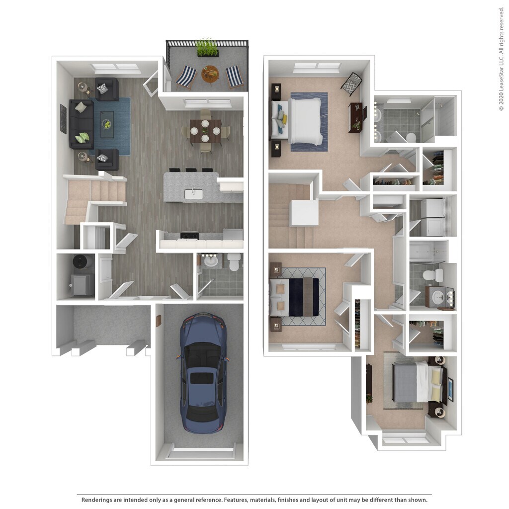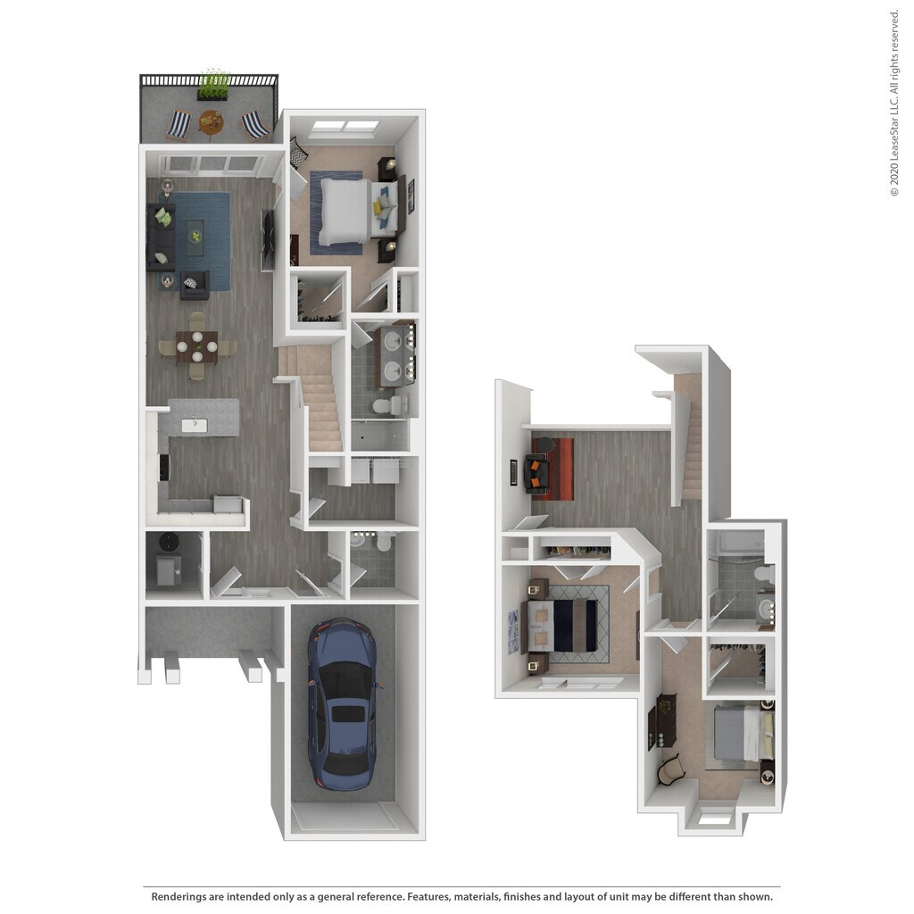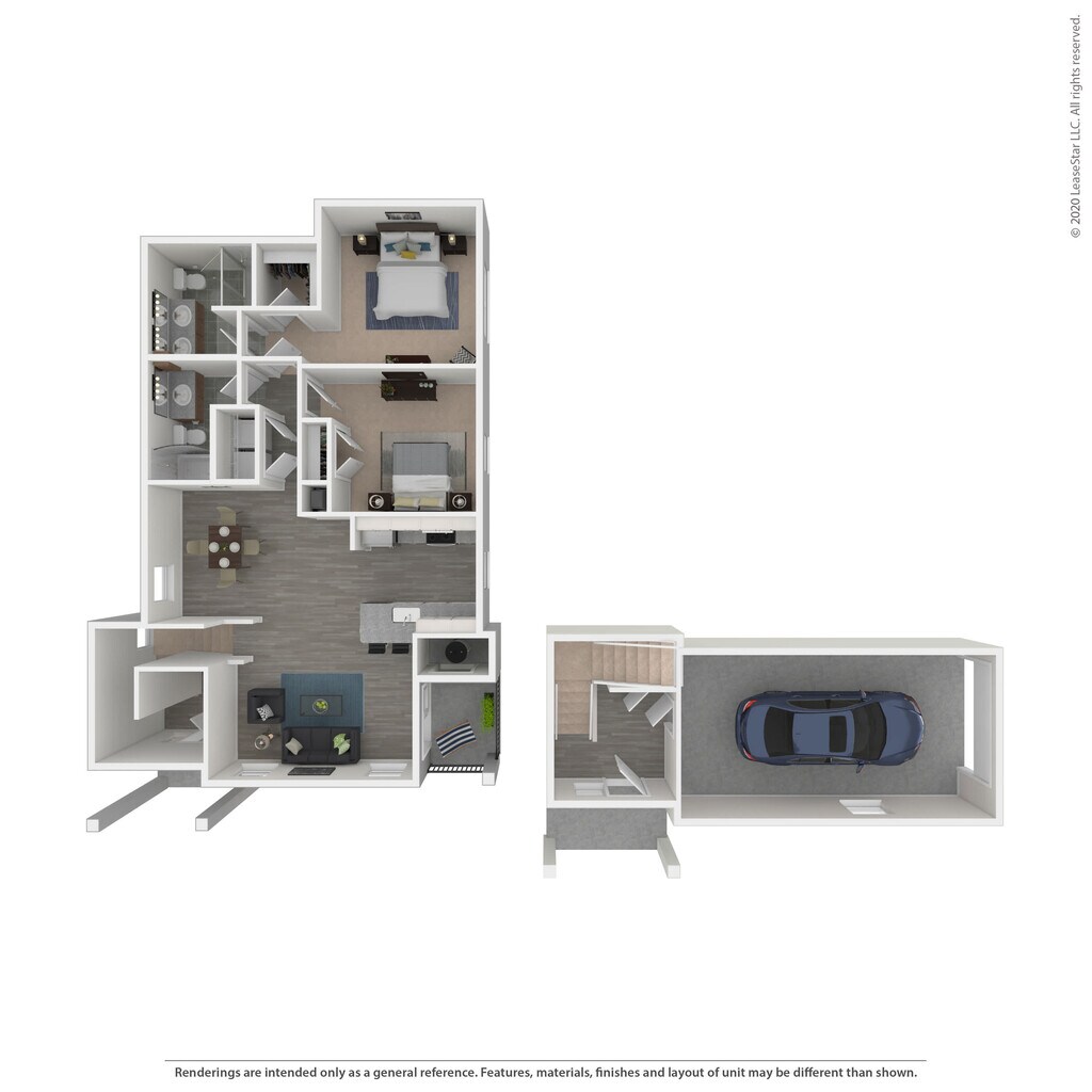 Breakaway Townhouse - Floorplan 2 Apartment Unit: E202Apartment Model: Breakaway Townhouse$3,0152 Bedroom, 2 Bath, 1402 sq ftAvailable NowDriftwood Townhouse