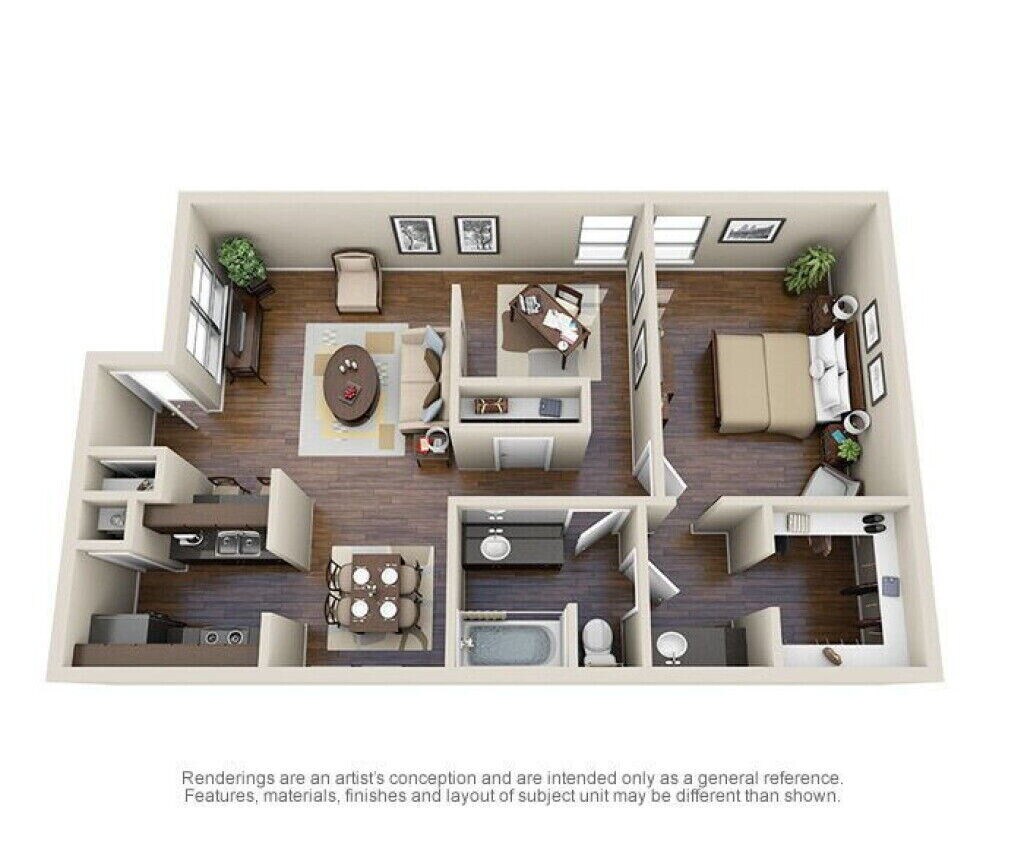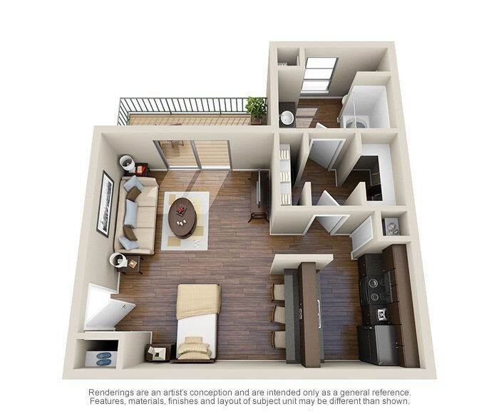 1 Bed, 1 Bath, 656 sq ftModel Gallery