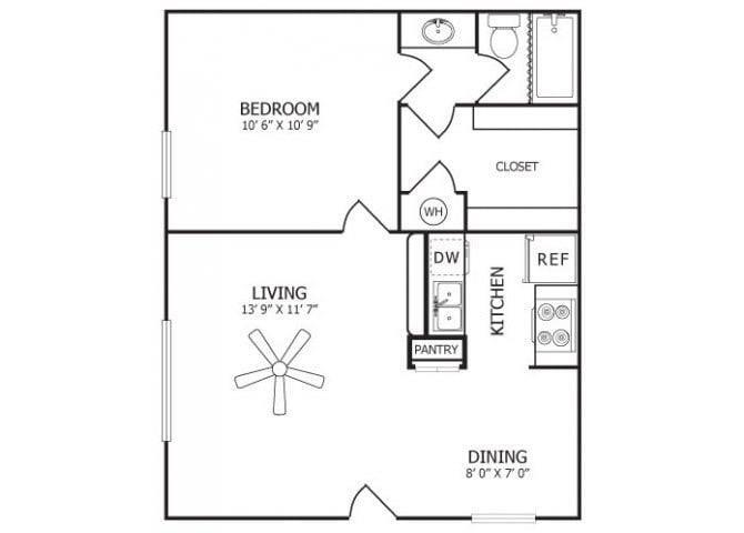 Apartment Model: A1From $8621 Bedroom, 1 Bath, 520 sq ftAvailable Now![]()