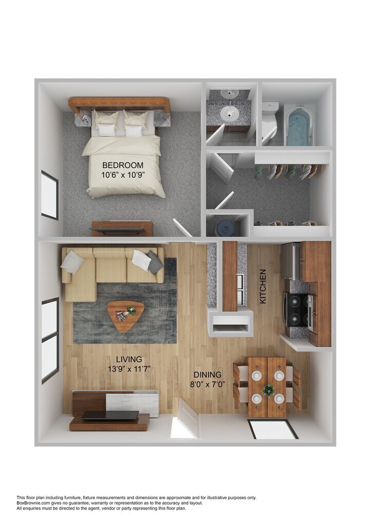Apartment Model: A1From $7101 Bedroom, 1 Bath, 520 sq ftAvailable Now![]()